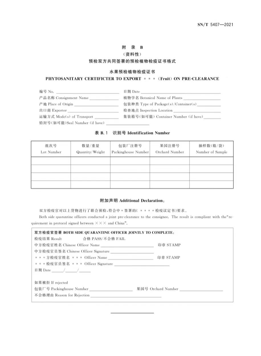 適用于向中國出口水果的產(chǎn)地和產(chǎn)品預(yù)檢。