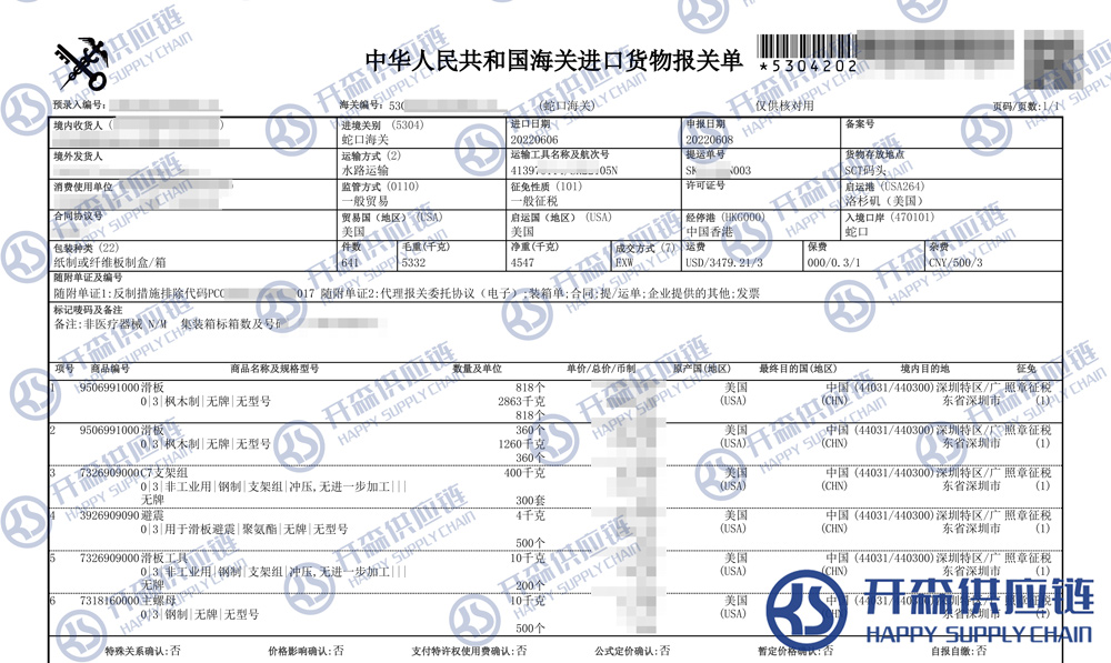一、美國(guó)滑板進(jìn)口報(bào)關(guān)代理案例詳情
