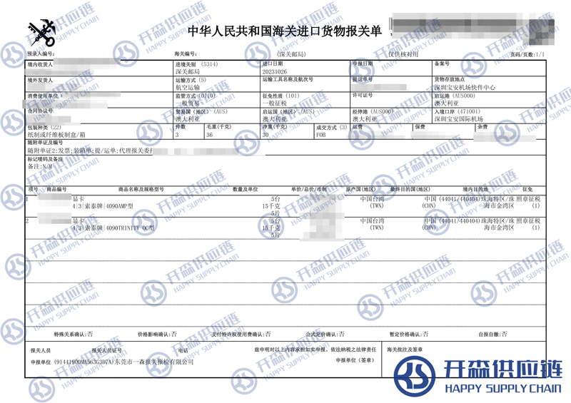 開森進口供應(yīng)鏈擁有高端顯卡進口報關(guān)操作經(jīng)驗及案例,十余年操作經(jīng)驗及案例可供參考,可按需定制高端顯卡進口方案,幫助客戶解決進口難題,快速進口清關(guān)到港到貨。