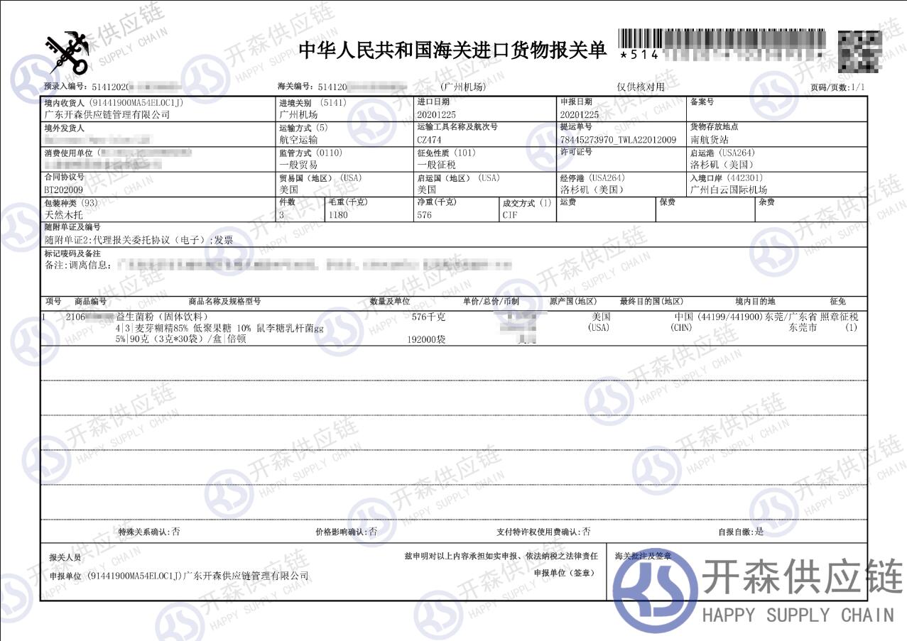 【本文結語】 上述就是【進口案例】益生菌粉(固體飲料)進口報關代理服務的全部內容,希望能對您有所幫助,如有固體飲料進口報關上任何疑問及問題可隨時在線聯(lián)系我們或撥打 18002611553,開森供應鏈擁有豐富的固體飲料進口報關操作經驗及案例,10余年進口經驗為您所用,各類進口疑難都能為您一一解答及協(xié)助快速處理解決!