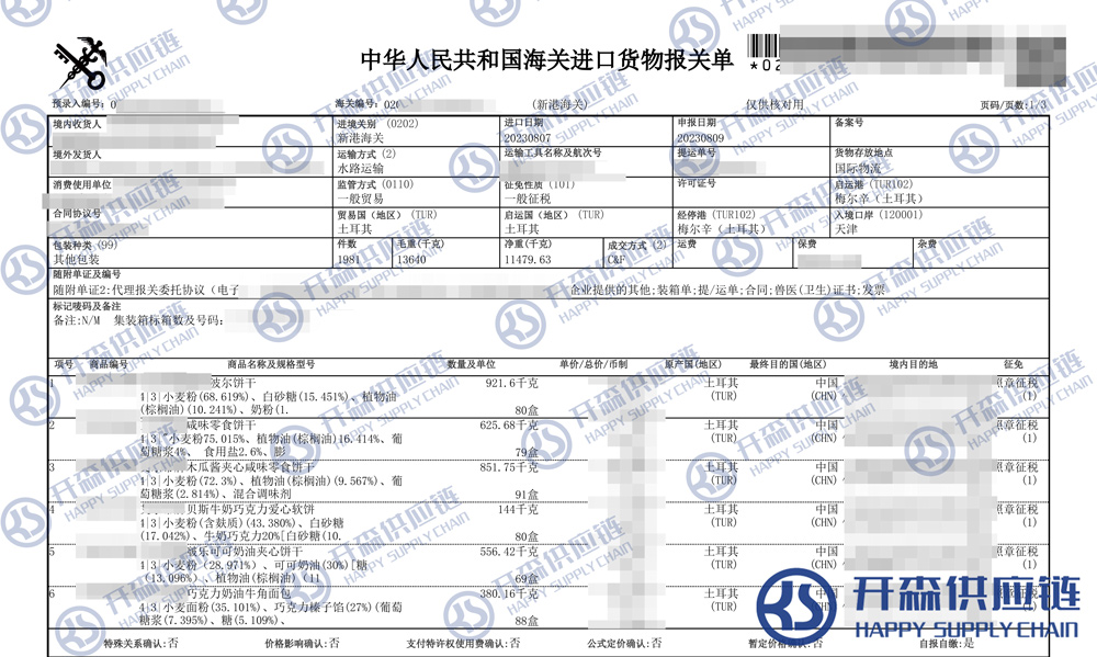 一、土耳其餅干進口報關(guān)代理案例詳情
