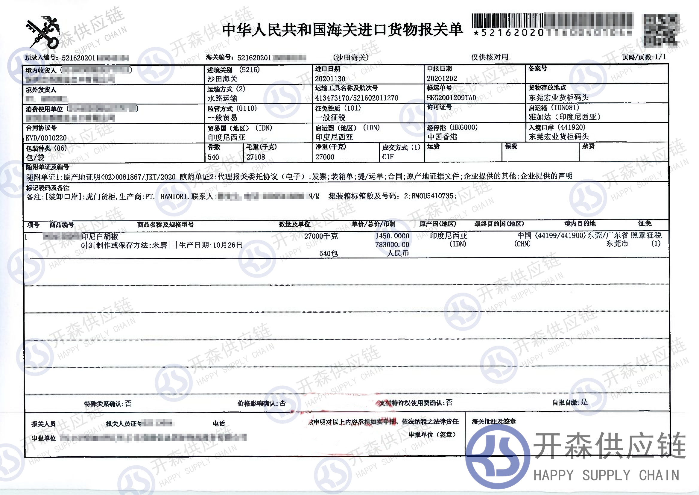 從印度尼西亞進(jìn)口一批胡椒到東莞碼頭,我司提供門到門進(jìn)口一站式清關(guān)服務(wù),開森擁有十余年農(nóng)副產(chǎn)品進(jìn)口清關(guān)經(jīng)驗及案例,為客戶提供量身制作的進(jìn)口方案,讓客戶進(jìn)口省時省心省成本。
